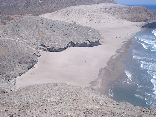 La prima mezza giornata ce la giochiamo a Granada, che, diciamocelo, e` proprio un bel posto. La citta` non e` niente male, e pullula di vita (un po' come Birmingham) e ce la spassiamo tra un bel te maroqui in teteria e una bella scarpinata coi valigiozzi (ne' massi??). In serata troppo visitiamo l'Alhambra: SPETTACOLO! Non ci sono parole per descriverne la bellezza, vi butto la` qualche foto, che magari rende meglio l'idea....le pareti in alabastro tutto bassorilievato sono surreali e poi le tre guardie (ah ah ah, chebbelli chessiamo). Ma non dilaghiamo. In serata ci vengono a prendere le nostre infermiere preferite Delia e Ana, che ci conducono a Jaen, la capitale mondiale delle asetunas. Qui soggiorniamo per 3 notti a casa di Delia e fratello. In questi giorni se ne combinano di cotte e di crude, becchiamo Jose` e ci strafoghiamo di tapas, poi anche Esther e Javi, yeah!!!!! giriamo un po': casella in campagna dei genitori di Delia, dove ci mangiamo una Paeilla spettacolare (vedi foto), castello di Jaen, ma soprattutto notti al parco a sbarellare e giocolare (bella massi che ci siamo sparati l'alba sul tetto prima di andare a letto). La domenica pomeriggio si parte per San Jose`: si va al mare!!!!!! convinciamo Jose` a farsi un paio di giorni con noi, e partiamo. Che dire? Sole, mare, amici, moijtos, yahtzee, jungle speed, spiderman 3 (emo version)...cosa si puo` vuoi di piu` dalla vita? un Tunnello!!!...che infatti ci raggiunge il giovedi` successivo. Ma andiamo con ordine: la casa e` senza prezzo (cioe`, il prezzo e` 650euri): enorme, su tre piani, con un bagno per camera, terrazzo sul tetto, piscina, ma soprattutto terrine di terracotta!!!! il paesello e` bello tranquillo, e i ristorantini e locali vari si fanno apprezzare. Le spiagge verso Cabo de Gata sono meravigliose, soprattutto monsul (mi pare si chiami cosi`), popolata da guerrieri spartani, di cui potete ammirare le foto. Il paesaggio circostante fa molto Armenia (cosi`, tanto per abituarmi) ed e` facile imbattersi in pattuglie di Talebani che controllano i passi di montagna (come vedete nelle foto).